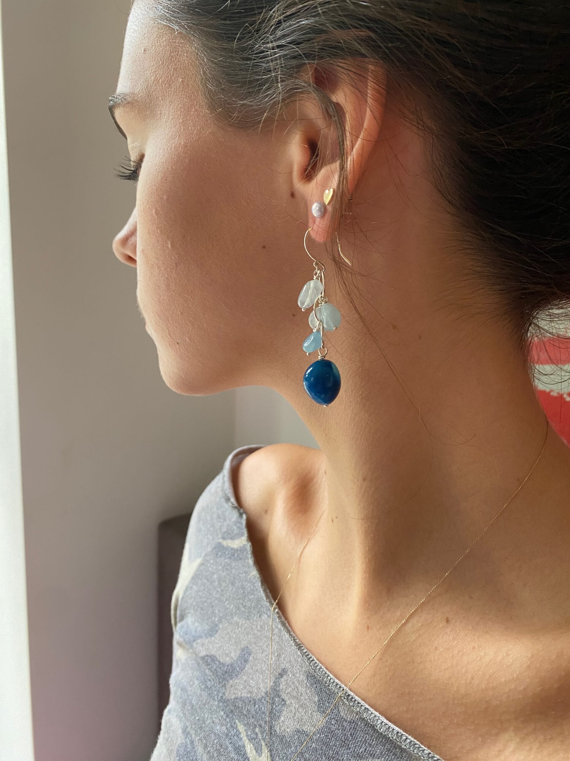 Aquamarine and chalcedony waterfall earrings with recycled silver
